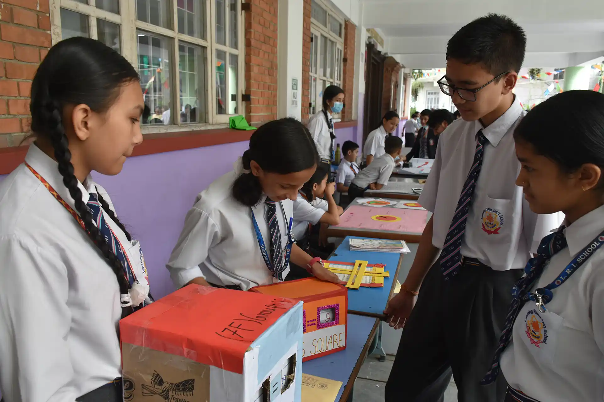 Students often work in groups or pairs, promoting collaborative learning and peer teaching. This encourages discussions, idea sharing, and cooperative problem solving.